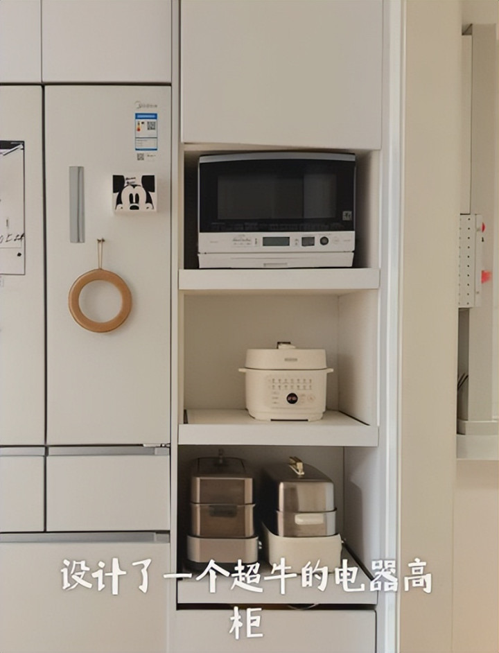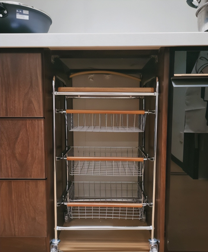 在厨房留了一个“洞”,可以DIY拉篮或者放置物架,用来放土豆之类的不需要放在冰箱的瓜果蔬菜。