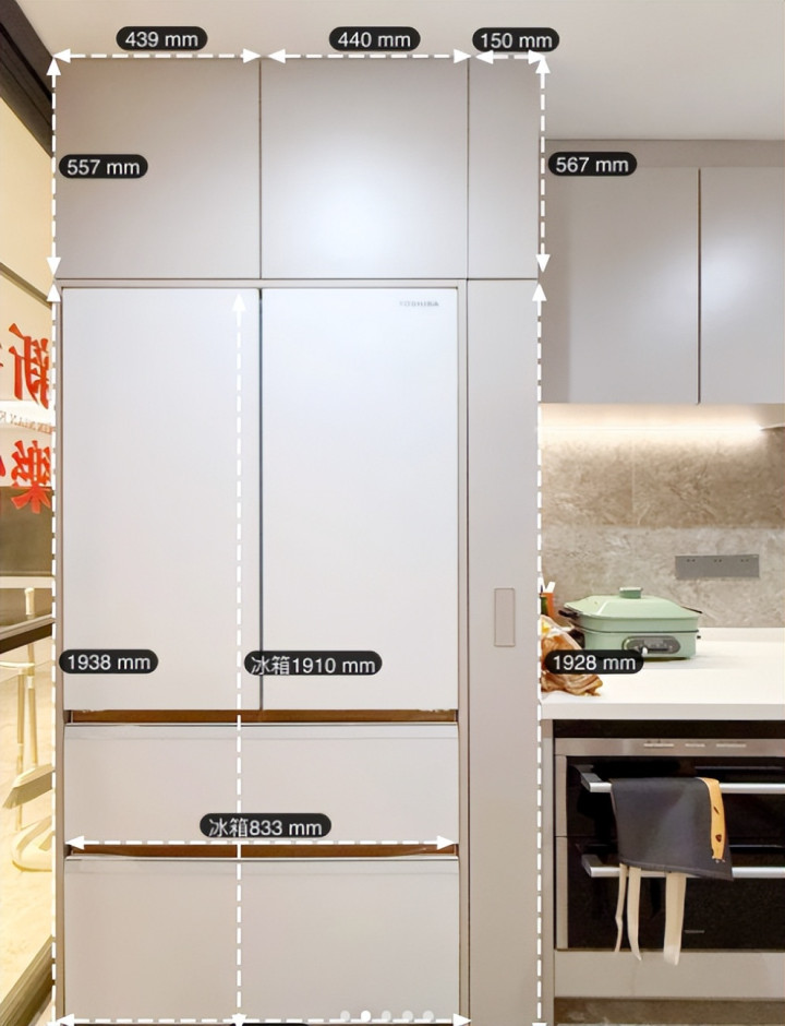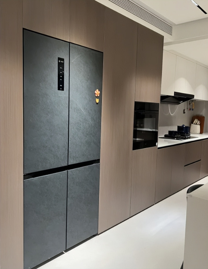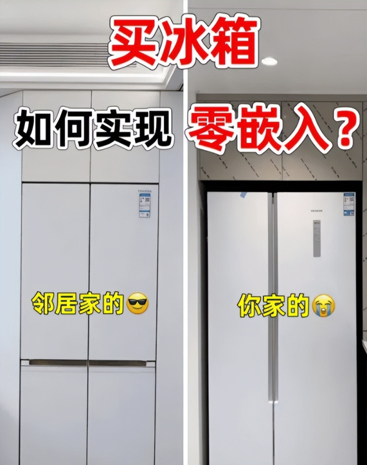 但需要注意的是,选冰箱时一定要注意选择零嵌冰箱!普通冰箱和零嵌冰箱的散热方式不同,并且柜门打开方式也不同,普通冰箱嵌入进去可能会打不开门!