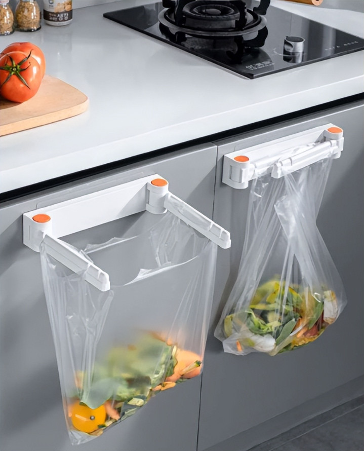 但湿垃圾最好别在这儿久留,配个折叠支架挂水槽边上,用超市的袋子,一天一清更方便。折叠后厚度不到5cm!不用时完全“隐身”,台面瞬间清爽!